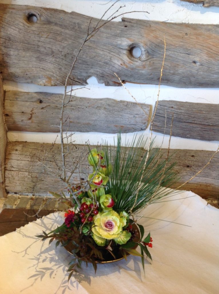 こちらは新年の祝賀会で壺花を活けさせて頂きました